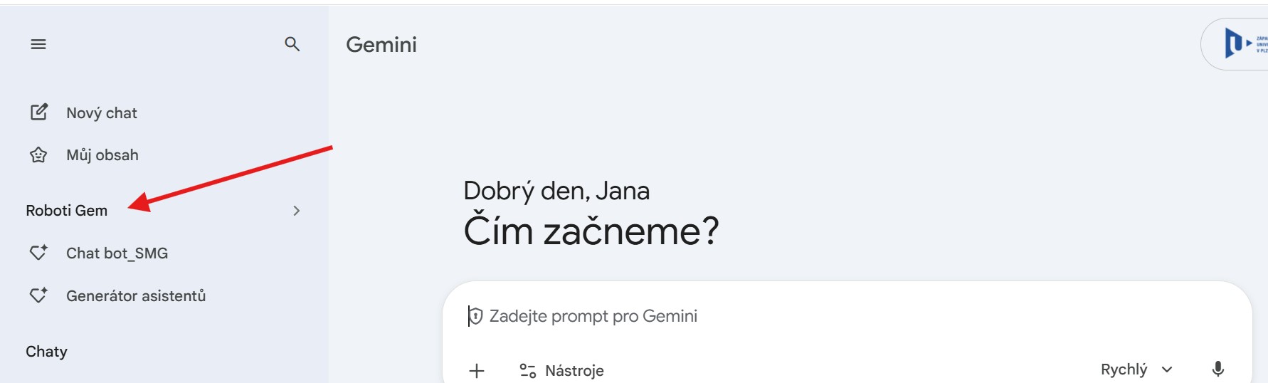 Úvodem poznamenáme, že AI asistent je softwarový program využívající umělou inteligenci, který napodobuje lidskou schopnost porozumět požadavkům, učit se, plánovat a kreativně reagovat. V nejznámějších LLMs se tito asistenti v současné době nazývají: Custom GPT, Claude projekt, Copilot Agent, Gems v Gemini. Vzhledem k tomu, že studenti na ZČU v Plzni mají k dispozici Gemini bude následovat obecný úvod k vytváření AI asistenta a potom ukázka pro vytvoření "robota GEM".